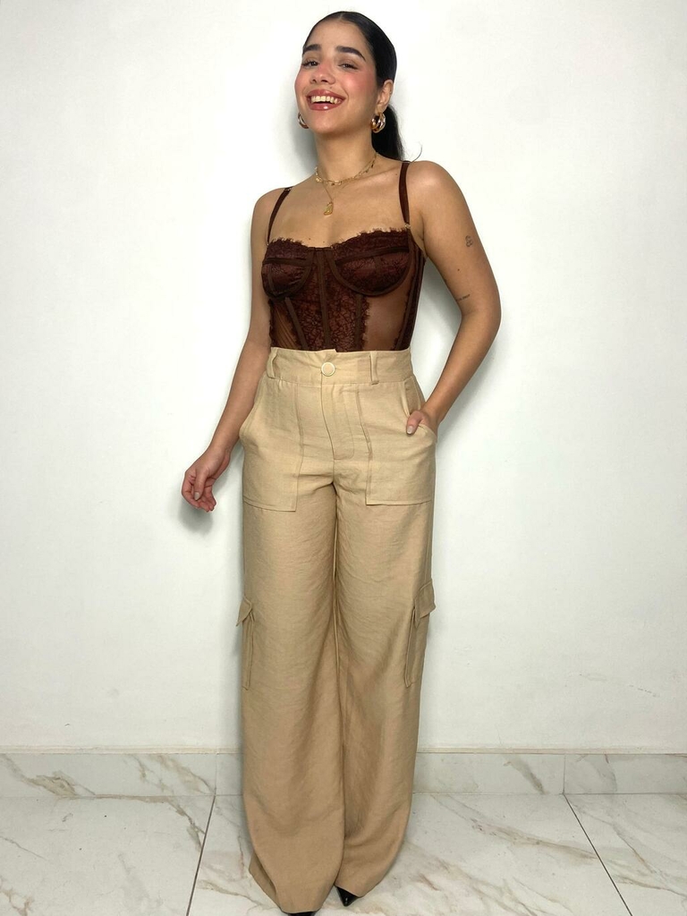Essa calça cargo une estilo e conforto, com um caimento perfeito que valoriza o corpo e traz aquele toque urbano e sofisticado. Possui bolsos utilitários laterais e modelagem reta com leve flare na barra, que alonga a silhueta.