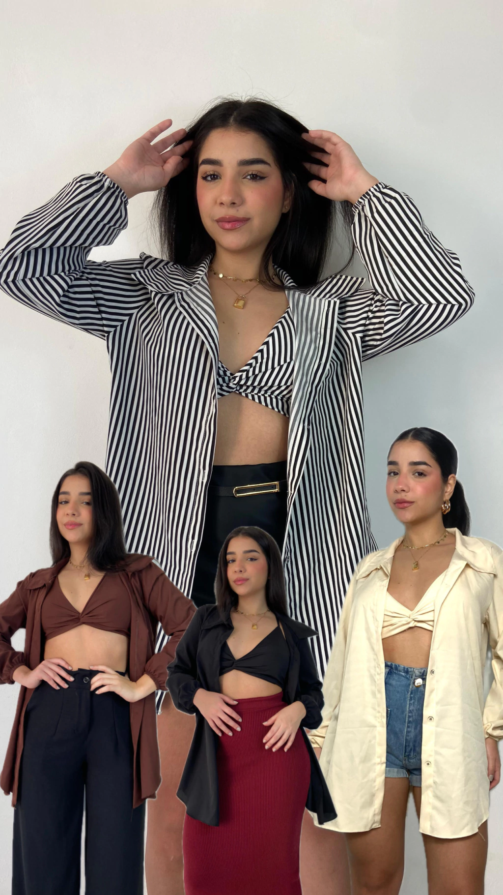 Disponível em duas cores: chocolate, off-white, preto e listrado.